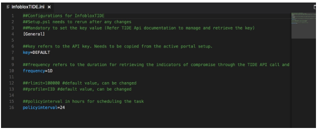 The integration is handled through PowerShell scripts which are part of the installation package. The package includes an installer which creates scheduled tasks and runs in two modes, incremental and reset. The incremental mode pulls in delta threat feeds from TIDE and appends to the existing DNS policies. While the reset mode pulls all feeds afresh and cleans up old policies, this mode runs less frequently than the incremental. The tasks also handle removing of expired indicators of compromise thus ensuring the presence of only relevant policies. This setup only requires an API key which is easily available from an ATC account profile.