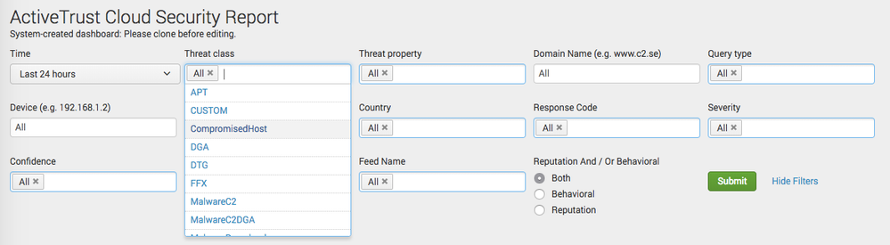 - filter it efficiently with full drill down support based on the time, threat property, threat class, source IP, domain name, query type and much more