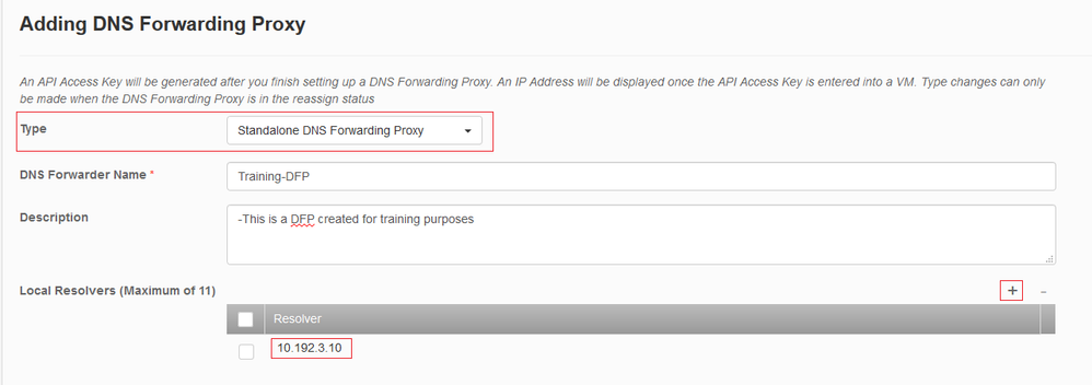 -Select the type as “Standalone DNS Forwarding Proxy”.